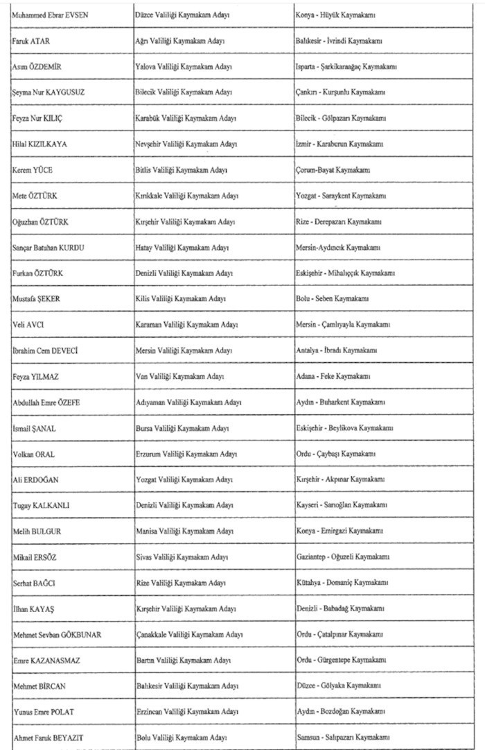 Kararlar arasında, tutuklanan Esenyurt Belediye Başkanı Ahmet Özer’in yerine kayyım olarak görevlendirilen Can Aksoy’un Beşiktaş Kaymakamlığından İstanbul Vali Yardımcılığı’na atanması da yer aldı.