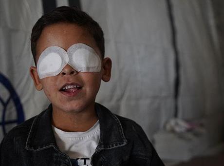 Filistinli çocuk, İsrail saldırılarında kısmen yıkılan evinin önünde oynadığı sırada dokunduğu bir cismin infilak etmesi ve şarapnellerinin yüzüne, gözüne ve bedenine isabet etmesi sonucu sağ gözünü kaybetti. Muhammed, yurt dışında tedavi edilmezse sol gözünü de kaybetme riskiyle karşı karşıya.
